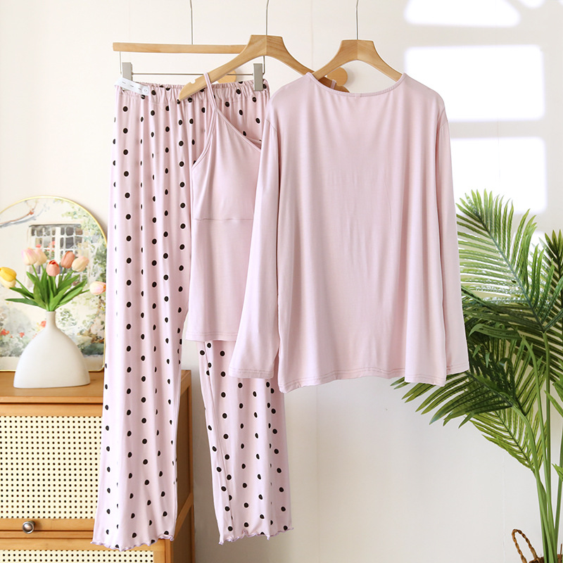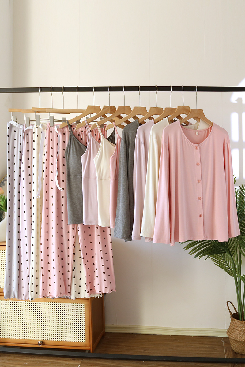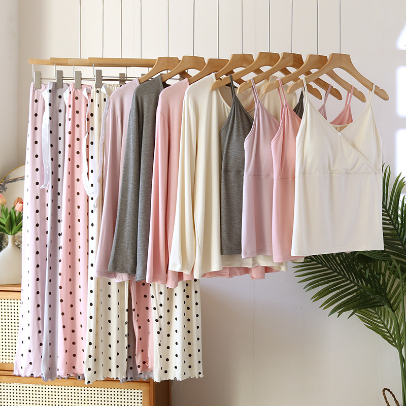 Confinement Clothing Spring And Summer Modal Three-piece Long-sleeved Trousers Pregnant Woman Feeding Nursing Pajamas